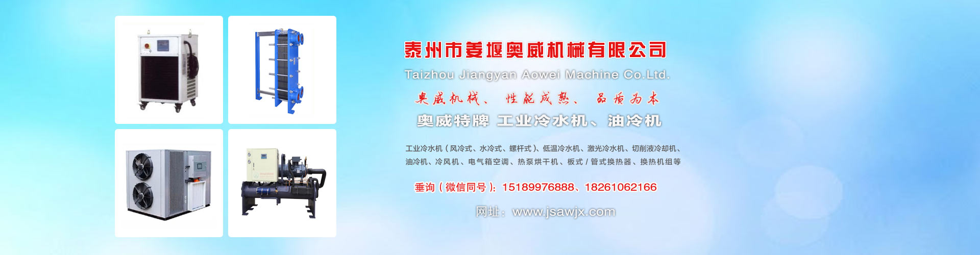 江蘇省,泰州市姜堰奧威機械有限公司,我公司是工業制冷設備,工業冷水機,油冷機,冷水機生產廠家(15189976888),公司集研發、設計、制造、銷售于一體。擁有20多年冷水機,油冷機,風冷式冷水機,水冷式冷水機,低溫冷水機,工業冷水機組,豐富生產經驗,產品以成熟的品質,穩定的性能,獲得到了廣大用的贊譽。